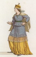 07-001946Костюм молодой дамы из семейства Висконти (с картины неизвестного художника, хранящейся в Миланской академии художеств) (лист 58 иллюстраций к роскошно изданной работе "Исторический костюм XII--XV веков". Париж. 1860 год)