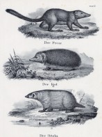 07-002541Малайский барсук, зверёк-манго и длинноносый бандикут (лист 26 первого тома работы профессора Шинца Naturgeschichte und Abbildungen der Menschen und Säugethiere..., вышедшей в Цюрихе в 1840 году)