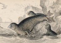 11-000182Тюлень обыкновенный (Phoca vitulina (лат.)) (лист 2 тома VI "Библиотеки натуралиста" Вильяма Жардина, изданного в Эдинбурге в 1843 году)
